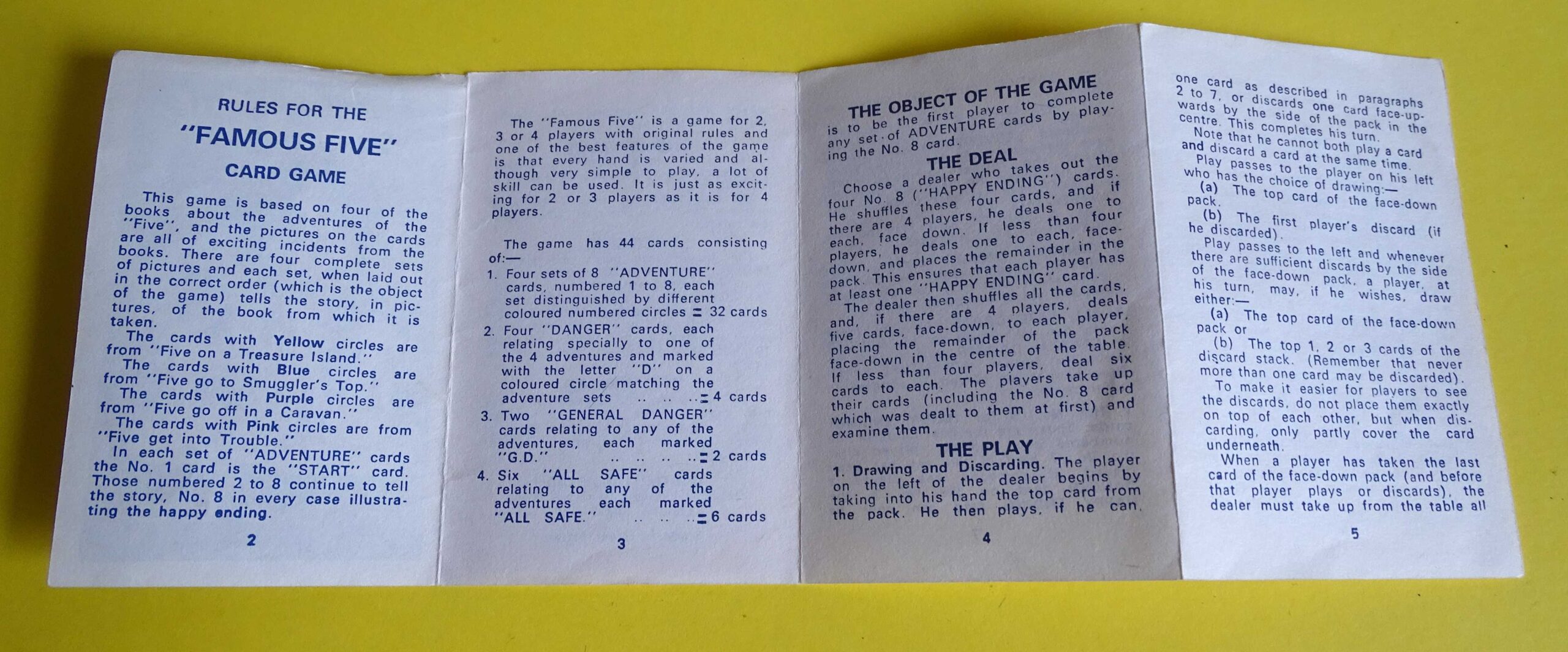 Here’s a lovely example of this revamped edition of the Famous Five game, released to coincide with a major U.K. T.V. adaptation, broadcast in two series on ITV in 1978 and 1979. The game is complete with a full deck of cards in excellent condition. The box has also survived in very good order as shown. Includes the original rules. Dating from 1978, the game was made in England by Castell Brothers under their Pepys brand name.